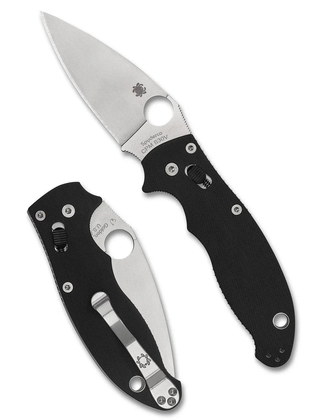 A proud member of Spyderco’s USA-Made family of knives, the Manix 2 is an extremely capable full-sized folder that is ready for the toughest challenges. Its broad, full flat-ground blade provides exceptional cutting power, while its textured index-finger choil and thumb ramp allow the option of a forward-positioned grip for enhanced control. The blade is supported by our high-strength Ball Bearing Lock mechanism, which complements the knife’s fully accessible Trademark Round Hole and reversible tip-up pocket clip to make every aspect of the Manix 2’s carry, deployment, and operation completely ambidextrous. The G-10-handled Manix 2 features full stainless steel liners and peel-ply-textured G-10 scales. Its blade is crafted from CPM S30V stainless steel and available in a choice of PlainEdge or partially serrated CombinationEdge formats. For tactical applications, the G-10-handled Manix 2 is also available in an all-black PlainEdge configuration, featuring a Diamond-Like Carbon (DLC) blade coating and matching black-coated liners and handle hardware.