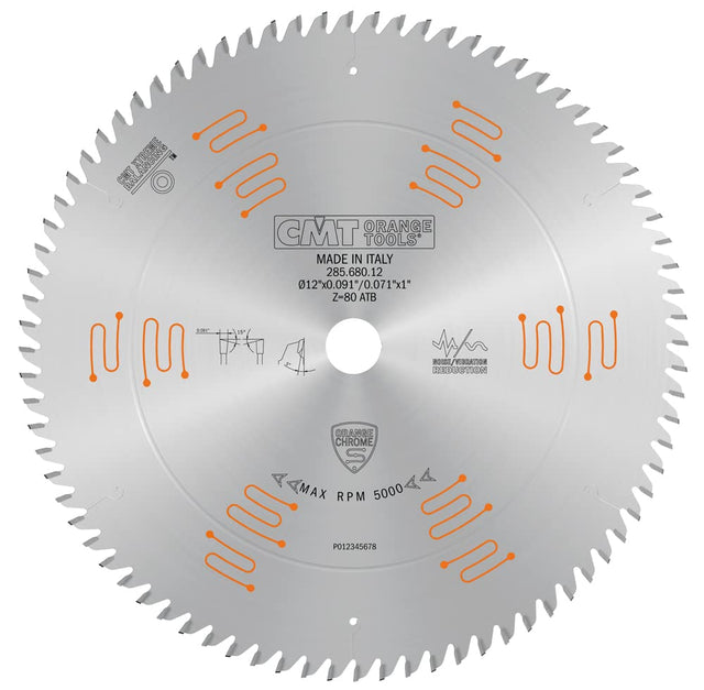 CMT Orange Tools 285.680.12 12" 80 Teeth Fine Finishing Sliding Compound Blade
