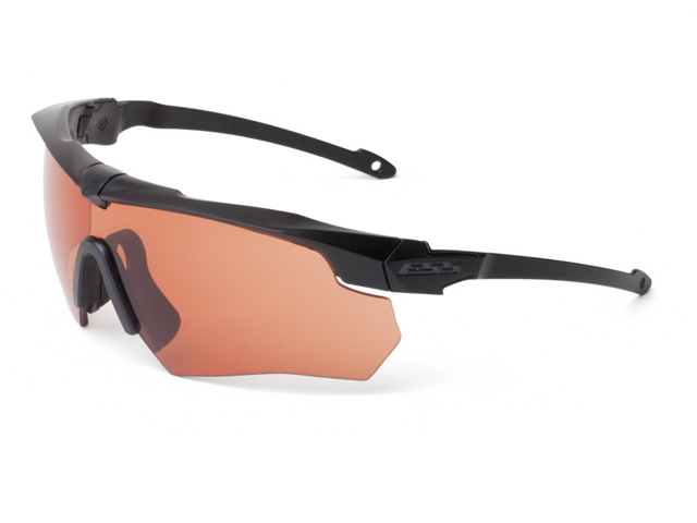 The ESS Crossbow Suppressor  is the first spectacle frame designed for use with ear cup hearing protection and communications devices. Featuring Z-Bend  Geometry, the frame's ultra-thin temple arms help keep noise out by minimizing the effect on the padded seal of ear cups. The slim temples eliminate the hot spots and pressure points that commonly occur when normal eyewear is worn under ear cups.
